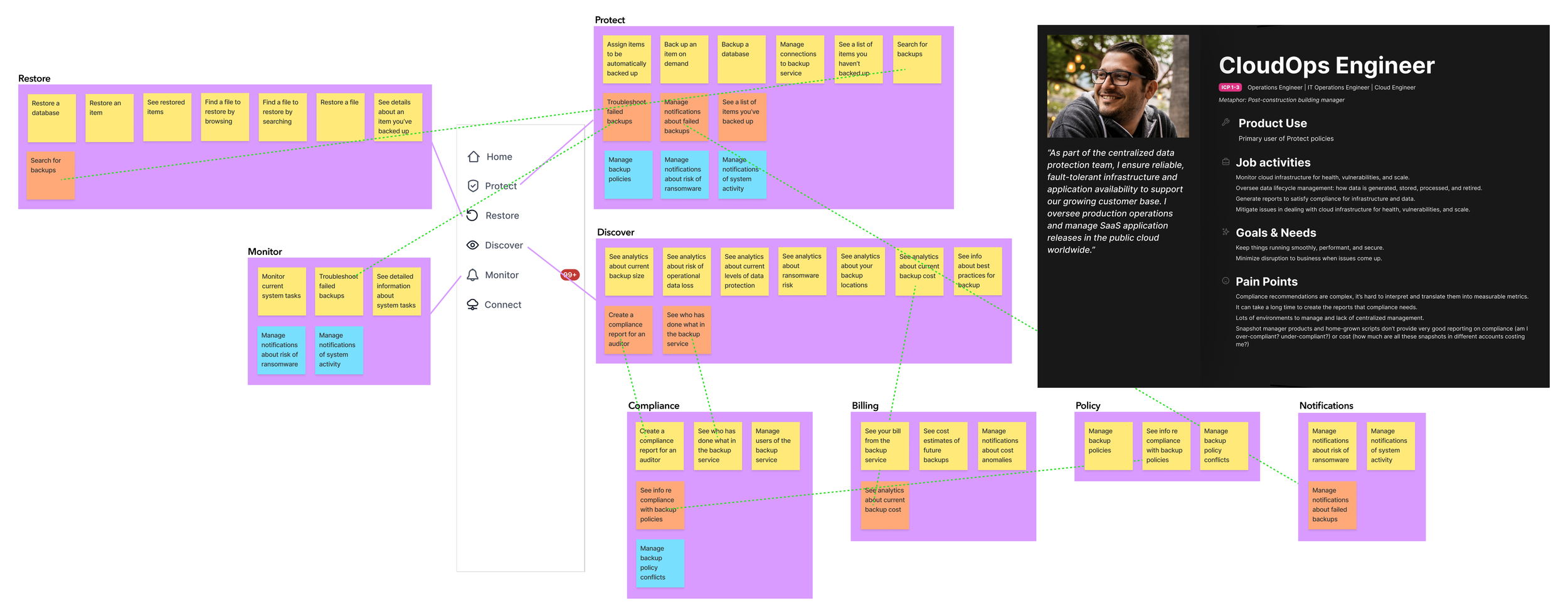 To understand how users naturally organize essential tasks like backup and restore, I conducted one-on-one card sorting sessions with users managing large volumes of data. The research uncovered more intuitive ways to structure core areas of the product and helped us move beyond internal assumptions. It also informed key personas that provided a clearer picture of user needs, goals, and priorities.